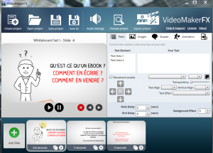 Ce logiciel est parfait pour la création rapide de vidéos marketing explicatives et de vidéos de formation. Explaindio possède également un convertisseur qui peut être utilisé pour modifier le format de votre vidéo selon l’endroit où vous voulez le diffuser. Explaindio à un seul désavantage par rapport à Video Maker FX : il fonctionne par abonnement à l’année.